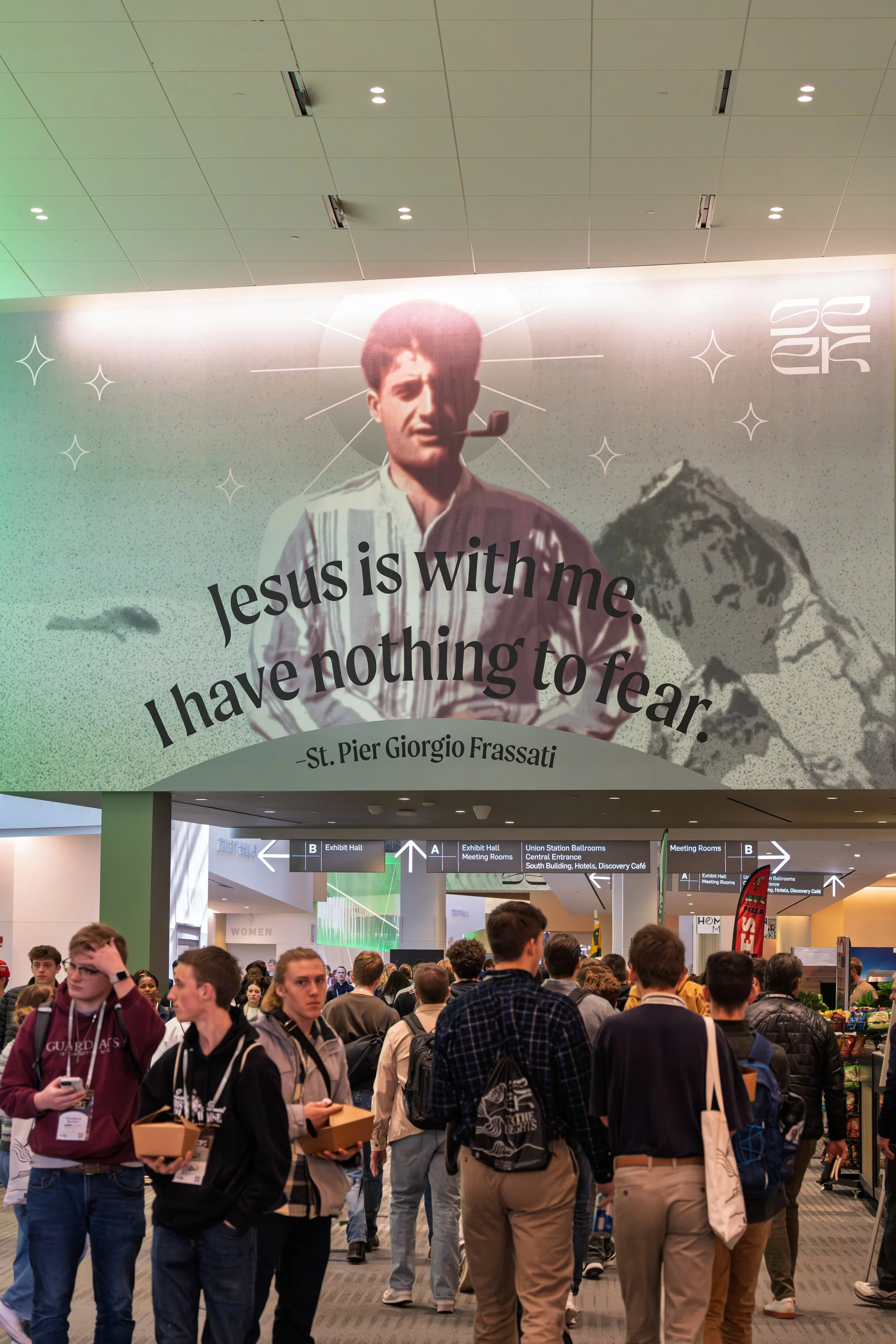 We design graphics for large-scale signage and indoor environments. Perfect for conferences, corporate events, brand activations, and more. This featured image was used for the main hallway of SEEK26 at the Greater Columbus Convention Center.